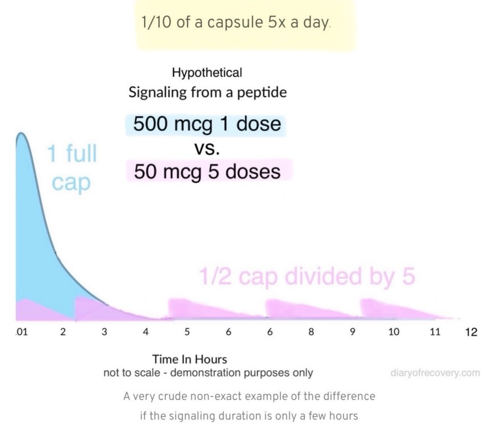 These charts to show the difference between taking a peptide every three hours versus taking it once a day: