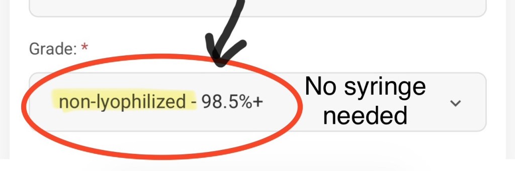 • Select Non-Lyophilized for the easiest reconstitution, you will only need to pour the water into the sprayer – as shown in video: