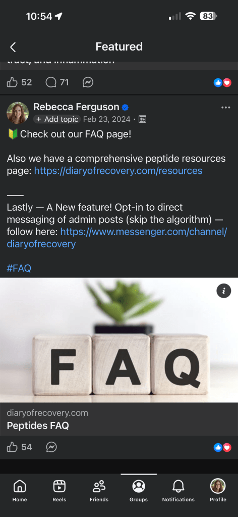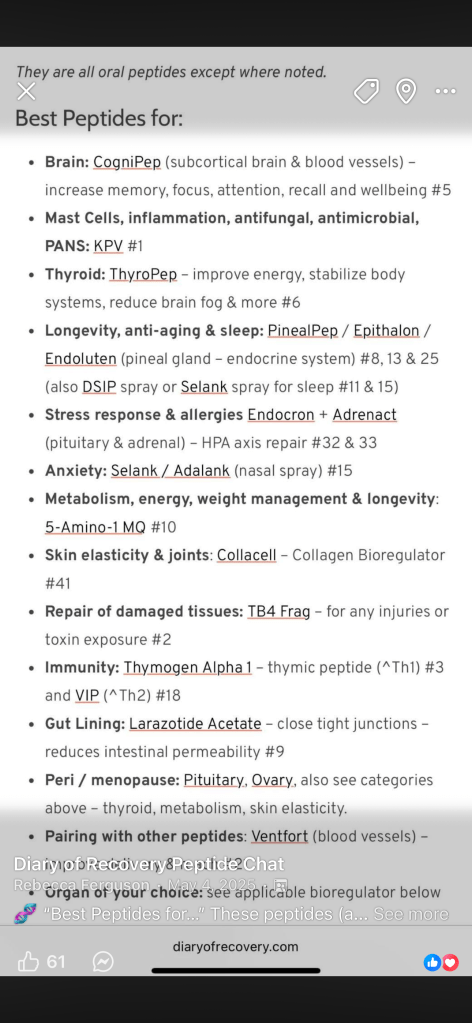 The best place to find the most organized version of ALL of our peptide content – including how to begin, is on the: