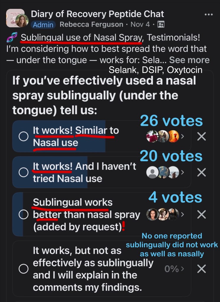 For ALL of these we find sublingual use is equally effective to nasal spray & dosing is interchangeable