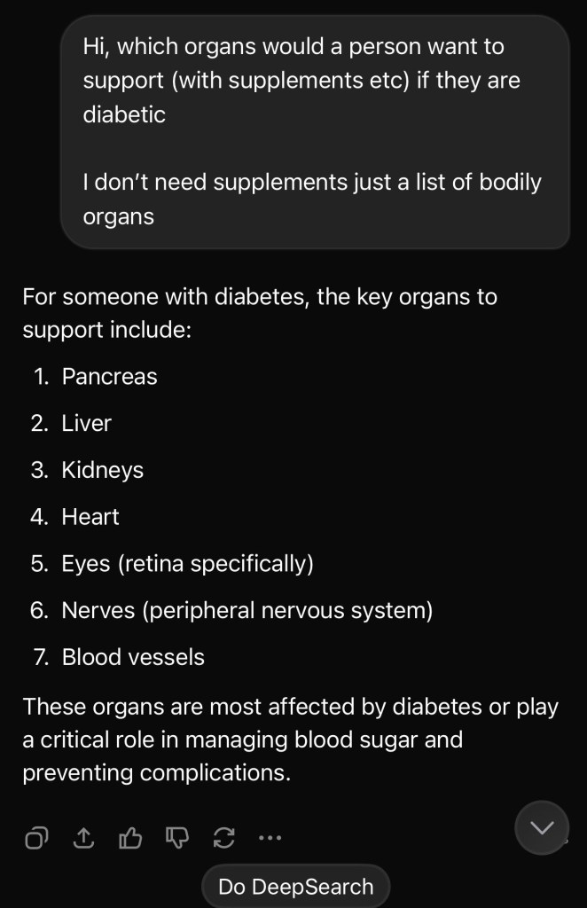 Asking AI to help determine which organs are causing your condition or symptoms is an easy way to narrow down your list.